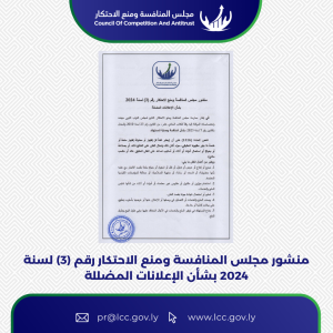 مجلس المنافسة ومنع الاحتكار أصدر منشورًا جديدًا لحماية حقوق المستهلكين. وفقًا للمنشور، للمستهلك العديد من الحقوق منها الحصول على السلع والخدمات الأساسية، والحفاظ على صحة وسلامة المستهلك، والحصول على معلومات وبيانات صحيحة عن السلع والخدمات، والاستفادة من معاملة عادلة وبدون تمييز، والحصول على ضمان الجودة عند إبرام أي صفقة، وصون كرامته والحفاظ على خصوصيته، واحترام القيم الدينية والنظام العام والآداب العامة. كما أكد المنشور على حق المستهلك في الحصول على سلع وخدمات مطابقة للمواصفات القياسية وإتاحة سبل حصول المستهلكين عليها. لرؤية المنشور اضغط الرابط التالي: الرابط